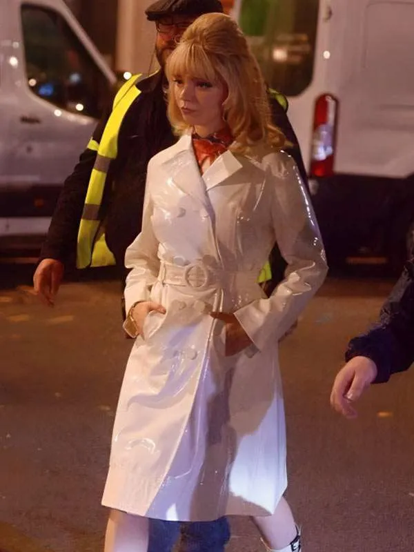 Anya Taylor-Joy Last Night in Soho White Leather Coat