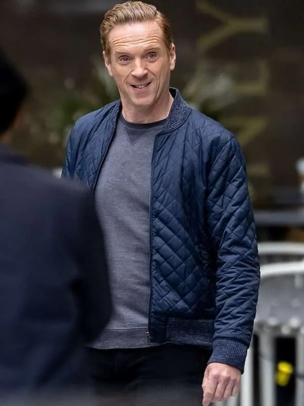 Damian Lewis Billions Bobby Axelrod Blue Quilted Bomber Jacket
