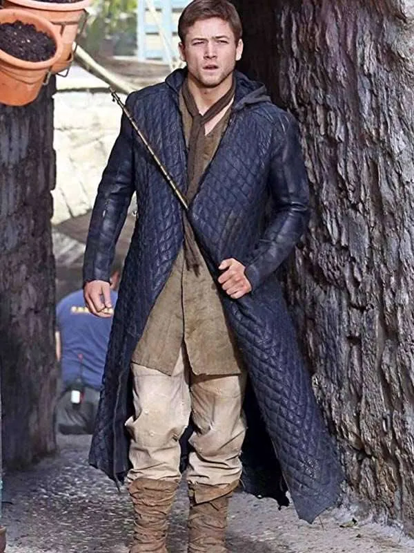 Robin Hood Taron Egerton Leather Quilted Coat